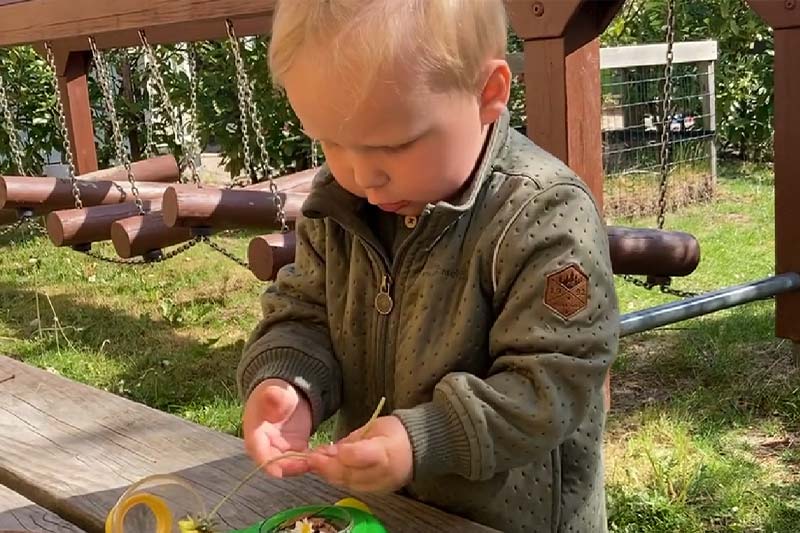 Find situationer med undersøgende og legende tilgange i din praksis. Tag et billede. Hvilke elementer læreplanstemaer oplever du hvirvle sig ind i situationen? Hvilke sciencepraksisser og legestemninger træder frem?